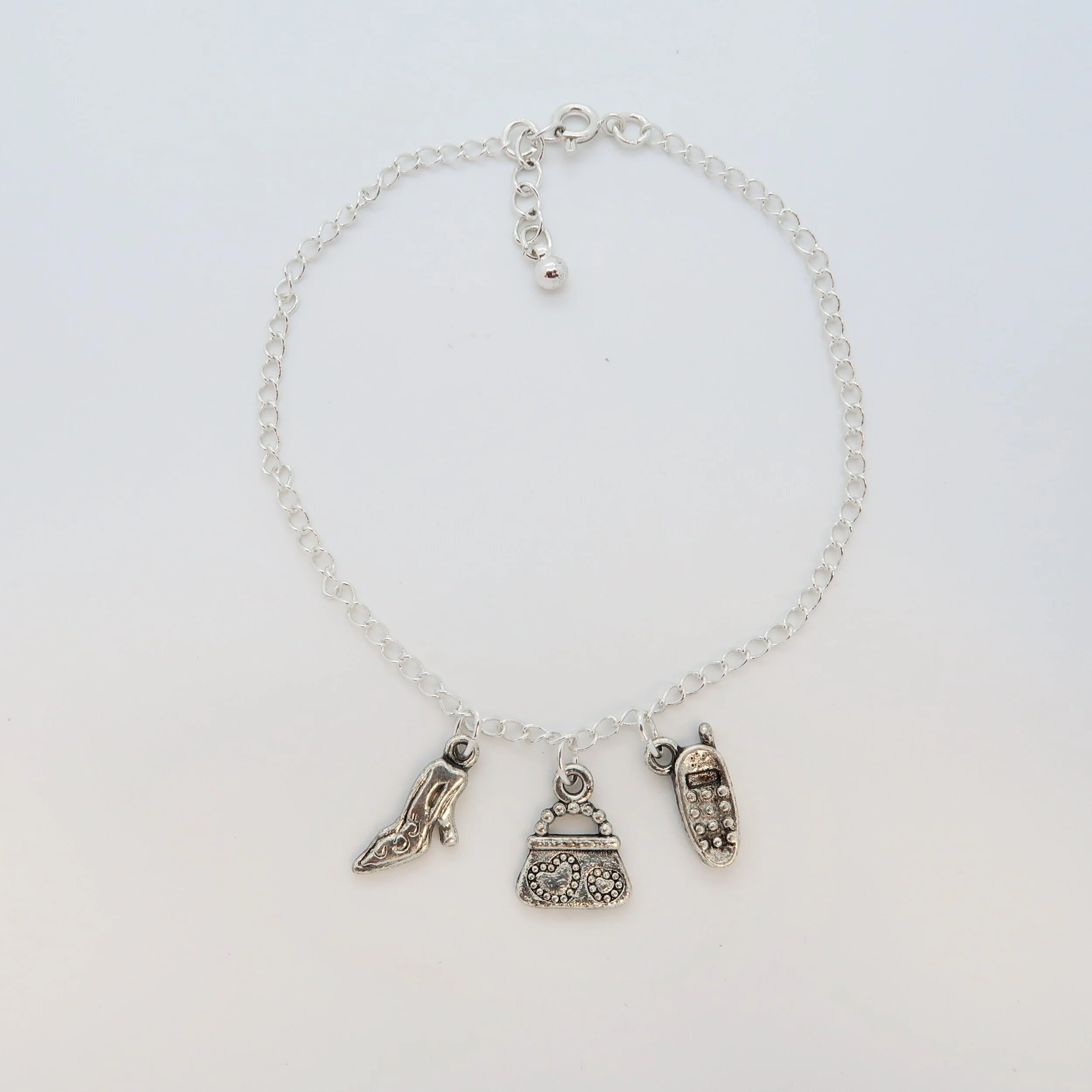 Anklets Anklet, Silver Plated with Magnesite Heart Charm $12.00 Anklet, Silver Plated with Charms: Purse, Shoe, Cell Phone $19.00 Anklet, Sterling Silver with Triangle Charm $24.00 Anklet, Silver Plated with Swarovski Crystal Teardrop $12.00 Anklet, Silver Plated with Heart Charms $12.00 Anklet, Silver Plated with Goldstone Bear Charm $12.00 Anklet, Silver Plated with Charms: Purse, Shoe, Cell Phone $19.00 Anklet, Silver Plated with Quartz Drop $12.00 Anklet, Silver Plated with Key Charms $12.00 Anklet, Silver Plated with Heart Charms $12.00 Sold out